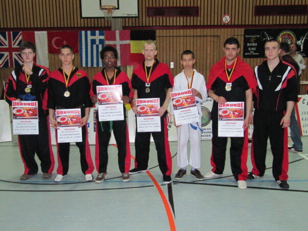 Mohamed Halli gewinnt gleich zwei Mal das begehrte Gold in den Kategorien Semikontakt -90kg WPKA und 3Punkte- kampf (ISDO). Alexander Traumann gewinnt Gold in der Klasse der Jugend A -60kg im 3 Punktekampf (ISDO). Christopher Füssel gelang ebenfalls gleich zwei Mal der Schritt auf das Treppchen. In der Klasse Semikontakt -70kg (WPKA) und in der Klasse 3-Punktkampf (ISDO) errang er jeweils die Bronzemedaille.